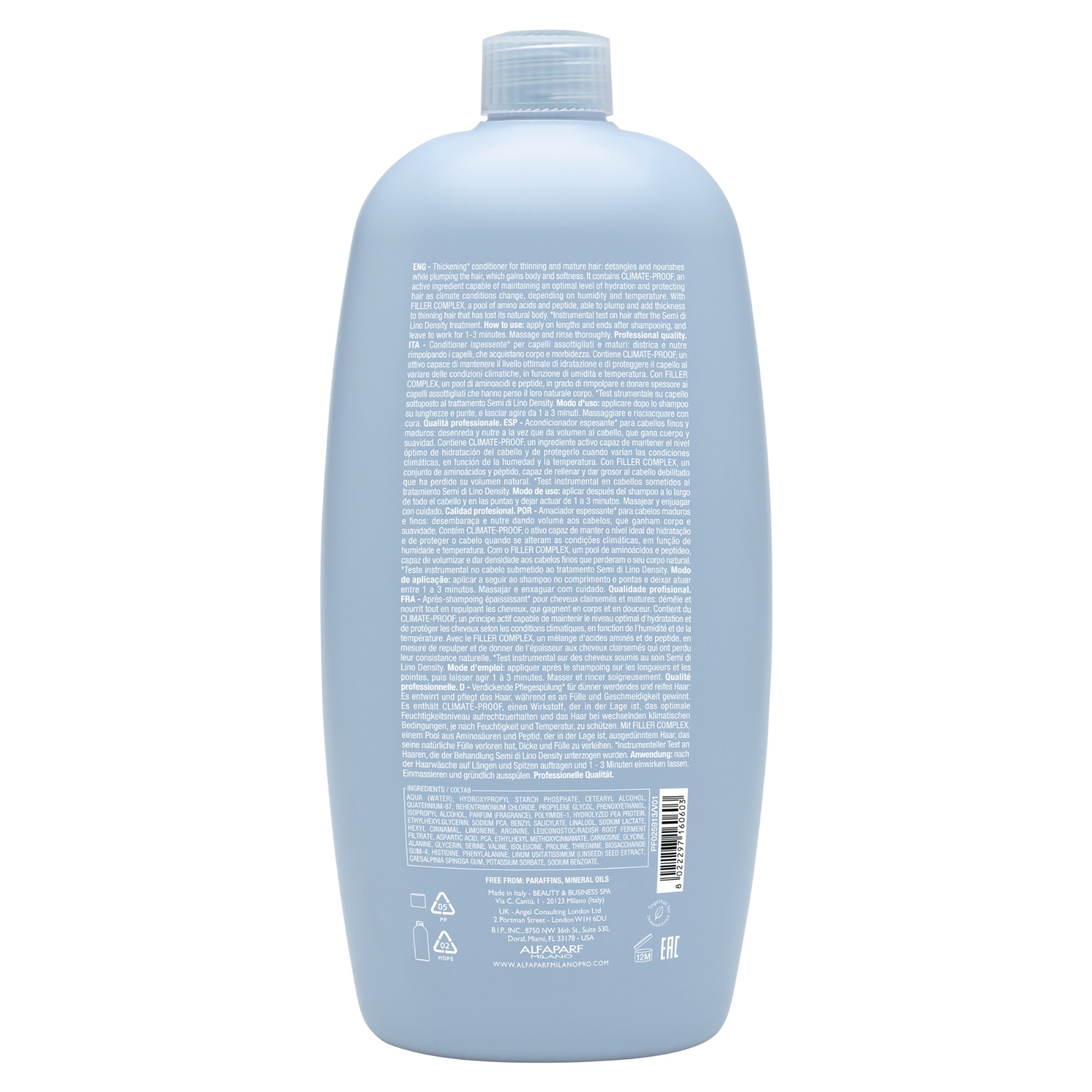 Cu o formula testata instrumental si un ingredient activ inovator, FILLER COMPLEX, balsamul densificator Alfaparf reumple si revitalizeaza parul subtire si matur, facandu-l sa para mai bogat si mai tanar. Pentru cele mai bune rezultate, aplica produsul pe lungimi si varfuri, lasandu-l sa actioneze 1-3 minute inainte de clatire.