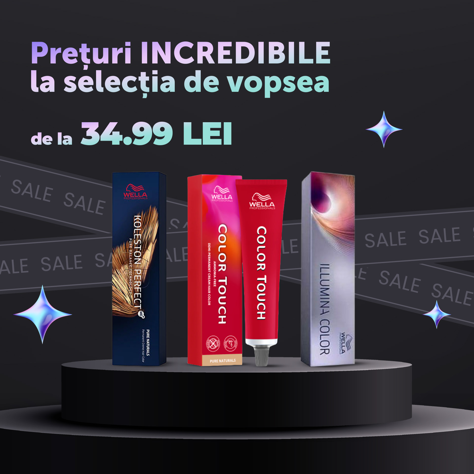 Wella Professionals oferă o gamă largă de produse, Fie că alegeți cunoscutele vopsele profesionale Koleston, Color Touch si Illumina sau produse de îngrijire a părului și produse de styling toate vă vor ajuta să obțineți un look perfect. Cu super prețuri la produsele Wella Professional, puteți obține lookul de invidiat pe care îl doriți fără să devalizați cardul de credit.
