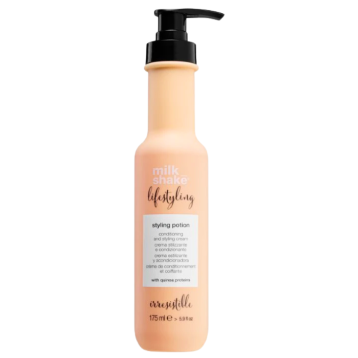 Milk Shake Lifestyling Styling este o lotiune profesionala conceputa pentru a oferi hidratare, definire si protectie tuturor tipurilor de par. Formula sa versatila hidrateaza cuticula, confera un aspect natural si protejeaza culoarea parului vopsit datorita proteinelor din quinoa si complexului Integrity 41 din extract de seminte de floarea-soarelui.