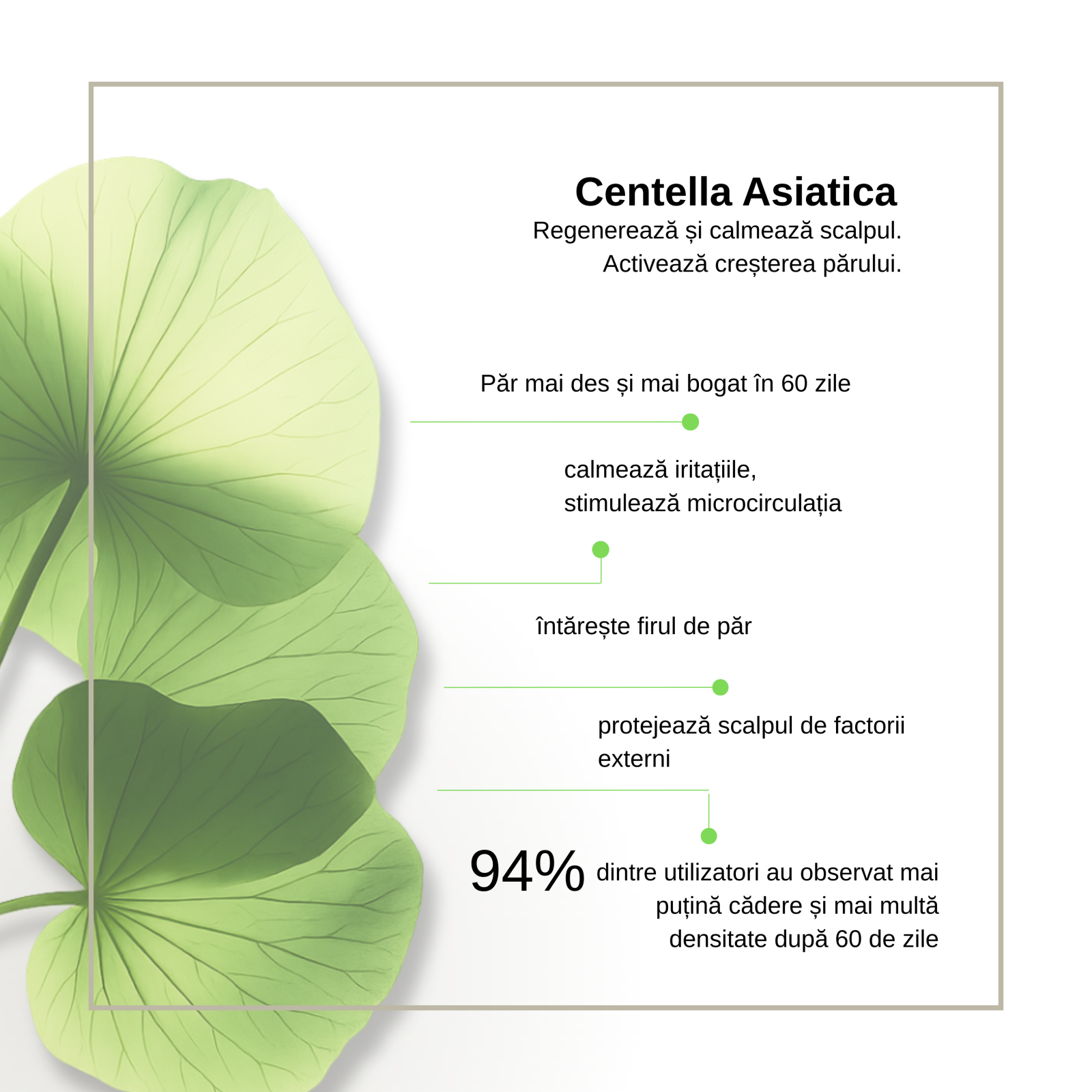 Stimuleaza cresterea parului de la radacina -Confera parului un aspect mai des si mai bogat