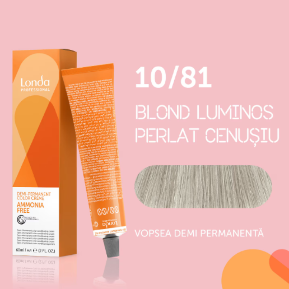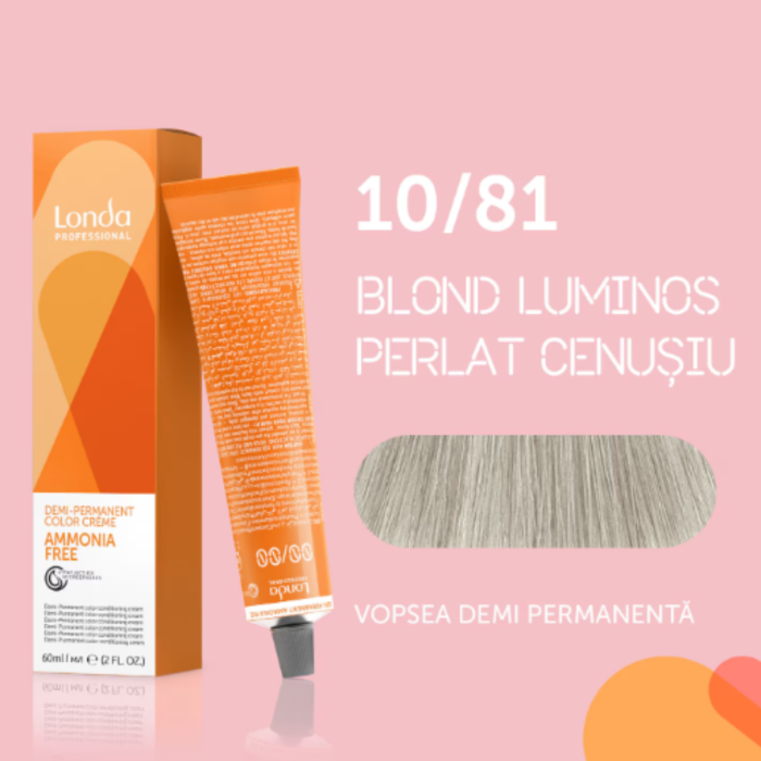 Vopsea de par demi-permanenta Londa Professional Demi-Permanent Color Cream 10/81, Blond Luminos Cenusiu Perlat, 60 ml