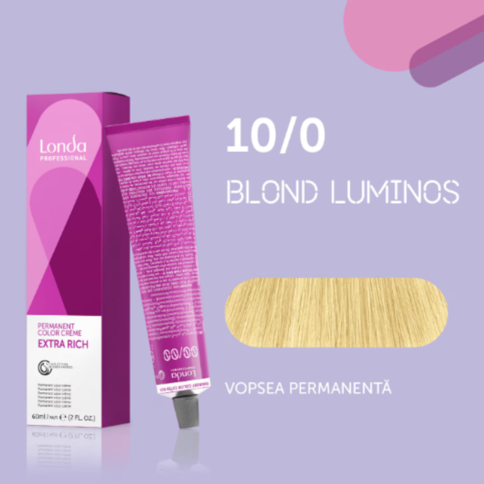 Vopsea de par permanenta Londa Professional Permanent Color Cream 10/0, Blond Luminos, 60 ml