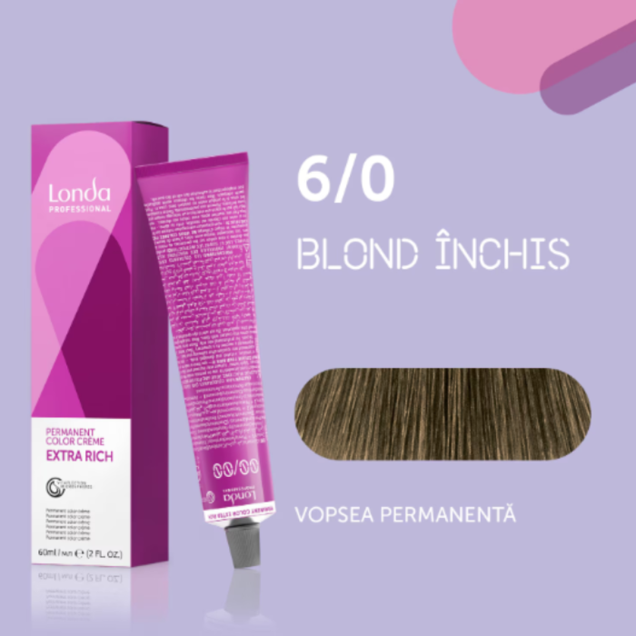 Vopsea de par permanenta Londa Professional Permanent Color Cream 6/0, Blond inchis, 60 ml