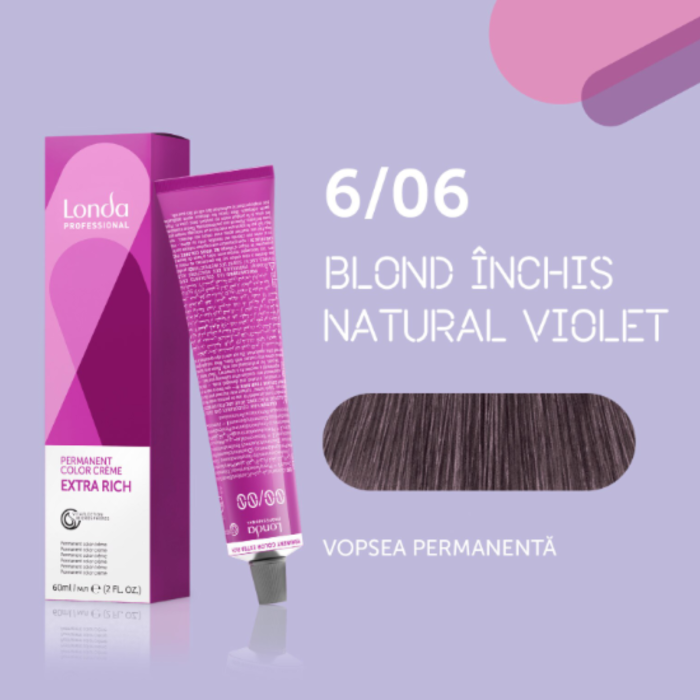 Vopsea de par permanenta Londa Professional Permanent Color Cream 6/06, Blond Inchis Natural Violet, 60 ml