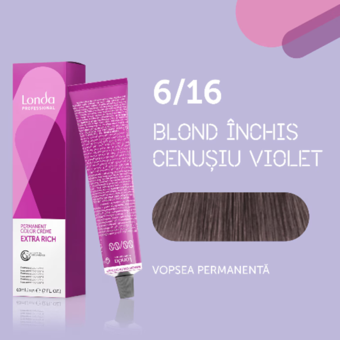 Vopsea de par permanenta Londa Professional Permanent Color Cream 6/16, Blond Inchis Cenusiu Violet, 60 ml