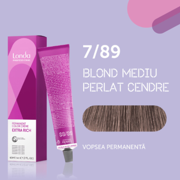 Vopsea de par permanenta Londa Professional Permanent Color Cream 7/89, Blond Mediu Perlat Cendre, 60 ml