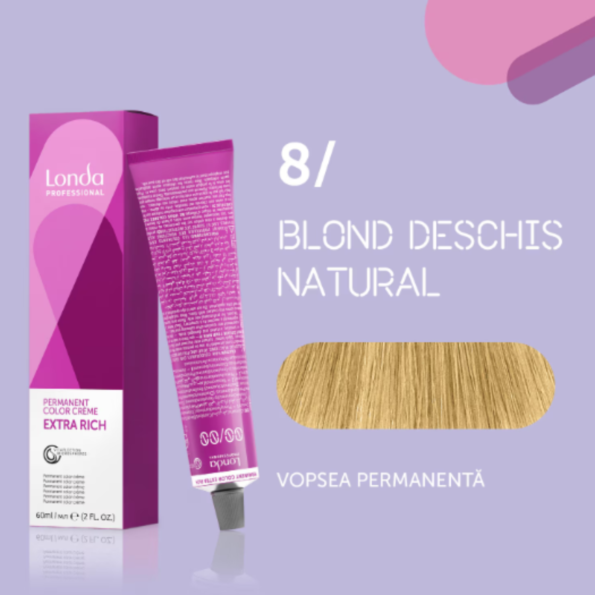 Vopsea de par permanenta Londa Professional Permanent Color Cream 8/, Blond Deschis Natural, 60 ml